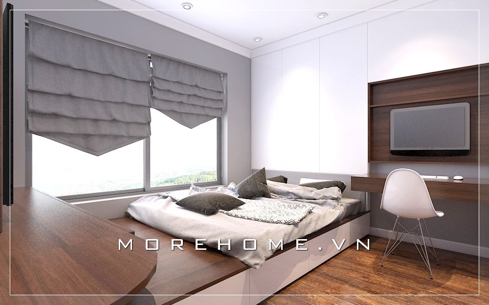 Thiết kế nội thất phòng ngủ chung cư hiện đại với đồ nội thất gỗ công nghiệp thiết kế đẹp mắt