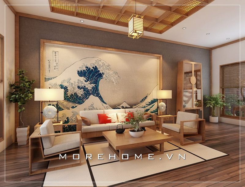 Mẫu sofa hiện đại với các đường nét gỗ vuông vắn kết hợp cùng đệm bọc vải êm ái cho phòng khách căn hộ chung cư thêm thoáng đãng, thoải mái và tiện nghi.